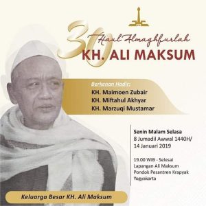 InsyaAllah, jika tidak aral melintang, Haul ke-30 Almaghfurlah KH. Ali Maksum ke-30 akan dilangsungkan pada 14 Januari 2019/ 8 Jumadil Ula 1440 H.