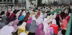 Bantul (27/1/2013) krapyak.org; Rabu sore, seusai jamaah maghrib, halaman Pondok Pesantren Krapyak dipenuhi oleh kerumunan santri yang duduk bersila dengan dominasi warna putih-putih. Malam itu, seluruh santri Krapyak berkumpul bersama jamaah ndibaiyyah bil-Musthofa pimpinan Gus Rifqi Ali atau biasa akrab disapa Gus Kelik dalam rangka memperingati kelahiran pemimpin ummat dan manusia teragung, baginda Nabi besar Muhammad SAW. Acara sholawatan malam kamis ini menjadi cukup spesail karena diselenggarakan bersama para santri. Lantunan sholawat sahut menyahut dengan koor para santri dan jamaah diiringi tabuhan terbang. Usai acara sholawatan, acara dilanjutkan dengan tahlil, sambutan atas nama keluarga oleh Nyai Hj. Ida Rufaida, dan ditutup dengan mauidhoh hasanah oleh KH. DR. Habib A Syakur.