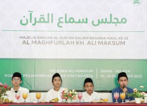 Simaan Alquran dalam rangka haul al maghfurlah KH Ali Maksum ke 33 dimulai pada Senin (13/12) dengan dibuka oleh Ibu Ny Hj Durroh Nafisah dan Ibu Nyai Hj Luthfiyyah. Majlis simaan ditutup dengan doa khotmil Alquran oleh Ibu Ny Hj Durroh Nafisah pada Selasa (14/12).